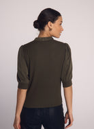 Short Sleeve Placket Mixed Shirt in Ivy Green